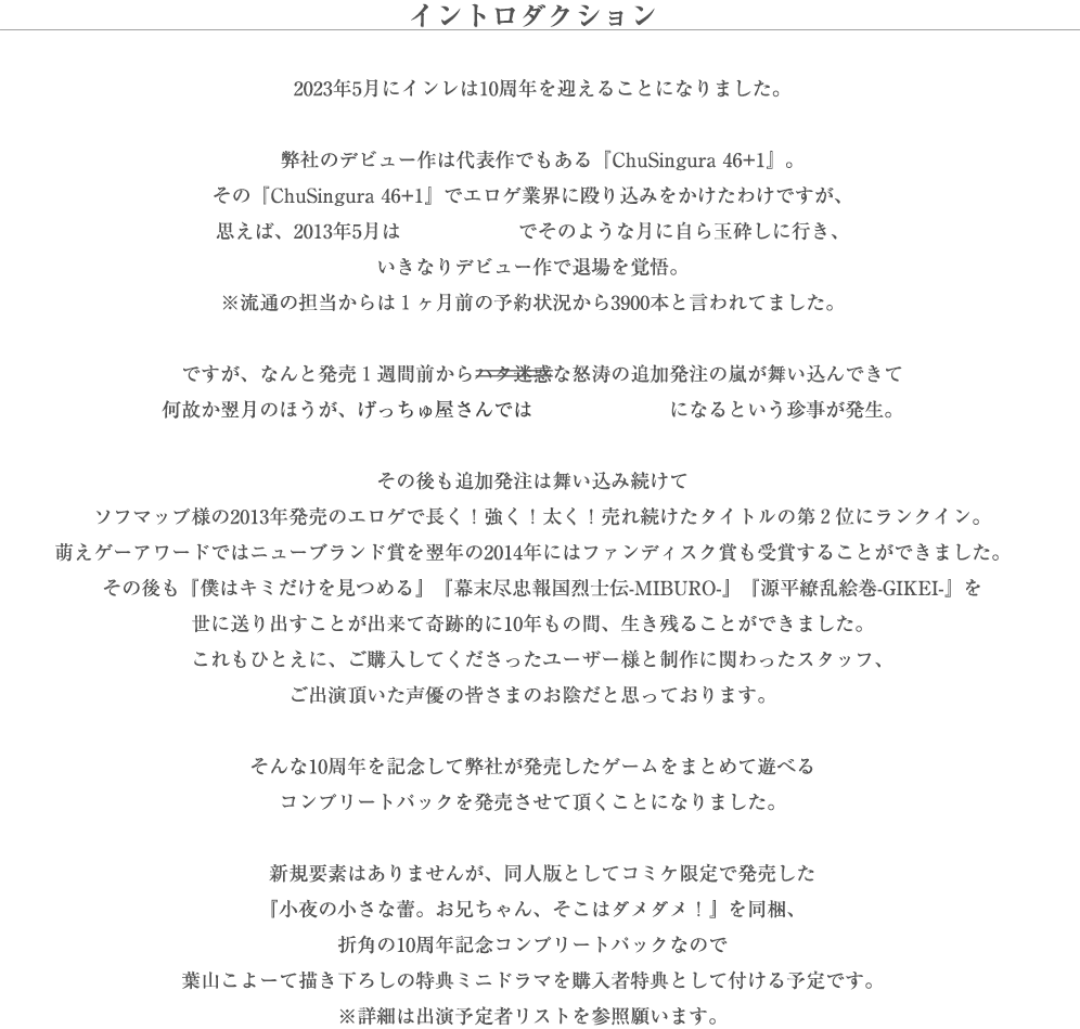 2023/01/01 インレ10th コンプリートパック公式サイト公開