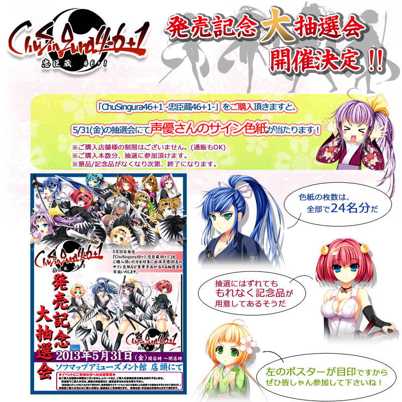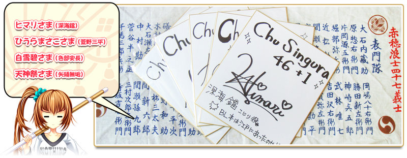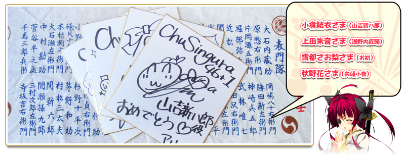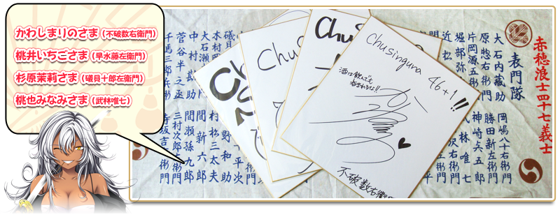 | 景品 | 「ChuSingura46+1」に出演して頂いた声優さんのサイン色紙が当たります!