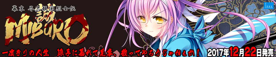 | サイトやブログ、twitterなどに「幕末尽忠報国烈士伝 MIBURO」の応援バナーを掲載し、一緒に新作を大いに盛り上げてくださる方を募集しています! キャンペーン期間(発売日前日まで)中に応募フォームからご応募頂いた方の中から抽選で 「応援バナーキャンペーン・オリジナルグッズ」をプレゼントいたします!(企画中・発表は発売後予定) @inre_official のフォローをして頂き、 お好きな画像を選んでtwitterの「アイコン」に設定、ブログの場合はブログ内にバナーを貼ってください。 こちらも同じく応募フォームからご応募ください。 設置には画像へ直リンクして頂ければ、画像情報が更新された際などに反映されますので便利です。 バナー画像をクリックした後に出るテキストボックス内のタグをコピーしてご利用ください。 応援バナー&twitterキャンペーン応募フォームはコチラ |